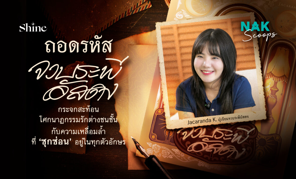 หลังจากพูดคุยกันมาสักพัก…ถึงเวลาที่เหมาะสมกับการเจาะลึกการทำงานเบื้องหลัง “จวบระพีอัสดง” เรื่องราวที่ถูกวางฉากหลังในช่วงของสงครามโลกครั้งที่ 2 และยังรวมถึงการเปลี่ยนแปลงการปกครองของไทยอีกด้วย ซึ่ง “จ๋า Jacaranda K.” ผู้เขียนได้พูดถึงแรงบันดาลใจการเลือกเหตุการณ์สำคัญในอดีตให้ฟังว่า